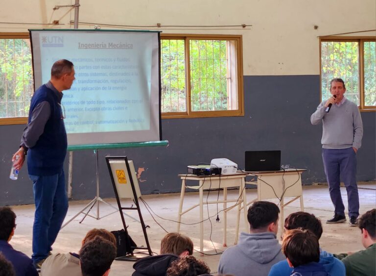 El miércoles 14 de mayo, por la mañana, coordinadores del área de Vinculación con el Nivel Secundario y Superior de la Facultad (Esp. Ing. Fernando Cacciavillani y Esp. Ing. Eduardo Hawryliszyn) brindaron una charla dirigida a unos 100 estudiantes del Séptimo año de la Escuela de Educación Secundaria Técnica N.º 7 «Taller Regional Quilmes» (IMPA), ubicada en av. Otamendi y Juan B. Justo.