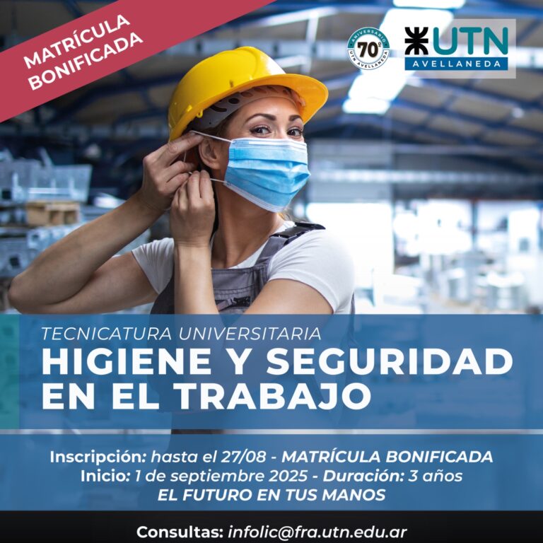 CONTINÚA ABIERTA LA INSCRIPCIÓN A LA TECNICATURA UNIVERSITARIA EN HIGIENE Y SEGURIDAD EN EL TRABAJO DE LA UTN AVELLANEDA