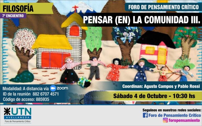 El sábado 4 de octubre a las 10.30 h se realizará el séptimo encuentro de Filosofía organizado por el Foro de Pensamiento Crítico de la UTN Avellaneda.