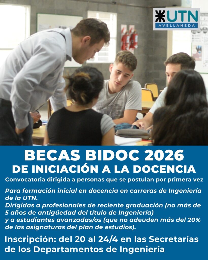 CON GRAN PARTICIPACIÓN DE PÚBLICO, SE REALIZÓ UNA NUEVA CAMPAÑA DE DONACIÓN DE SANGRE Y REGISTRO DE MÉDULA ÓSEA • 20 abril, 2026 • ESTUDIANTES, INSTITUCIONAL BECAS BIDOC DE INICIACIÓN A LA DOCENCIA • 19 abril, 2026 • ESTUDIANTES, INSTITUCIONAL LA FACULTAD PROMUEVE LA CAPACITACIÓN Y EL DESARROLLO EMPRENDEDOR HACIA TODA LA COMUNIDAD • 18 abril, 2026 • EXTENSIÓN, INSTITUCIONAL DESARROLLO DEL PLAN DE INFRAESTRUCTURA 2026 • 16 abril, 2026 • INSTITUCIONAL FORO DE PENSAMIENTO CRÍTICO DE LA UTN AVELLANEDA: PRIMER ENCUENTRO DE FILOSOFÍA • 16 abril, 2026 • ESTUDIANTES, INSTITUCIONAL JORNADA DE BIENVENIDA PARA LAS Y LOS ESTUDIANTES DE PRIMER AÑO DE LA TECNICATURA UNIVERSITARIA EN PROGRAMACIÓN • 15 abril, 2026 • ESTUDIANTES, INSTITUCIONAL CONVOCATORIA PID 2026 UTN • 14 abril, 2026 • INSTITUCIONAL PRIMER DIA DE CURSADA EN LAS CARRERAS DE INGENIERÍA: MÁS DE MIL INGRESANTES RECIBIERON LA BIENVENIDA INSTITUCIONAL • 14 abril, 2026 • ESTUDIANTES, INSTITUCIONAL MEMORIA Y SOBERANÍA: VETERANA DE MALVINAS BRINDÓ UNA CHARLA EN LA FACULTAD • 13 abril, 2026 • EXTENSIÓN, INSTITUCIONAL FORO DE PENSAMIENTO CRÍTICO DE LA UTN AVELLANEDA: ENCUENTRO DE HISTORIA SOBRE LA GUERRA DE MALVINAS • 9 abril, 2026 • EXTENSIÓN, INSTITUCIONAL ABIERTA LA INSCRIPCIÓN A LA TECNICATURA UNIVERSITARIA EN TECNOLOGÍAS DE LA INFORMACIÓN (TUTI) • 6 abril, 2026 • ESTUDIANTES, INSTITUCIONAL FORTALECIMIENTO A LA VINCULACIÓN INTERUNIVERSITARIA E INTERDISCIPLINAR • 1 abril, 2026 • ESTUDIANTES, INSTITUCIONAL