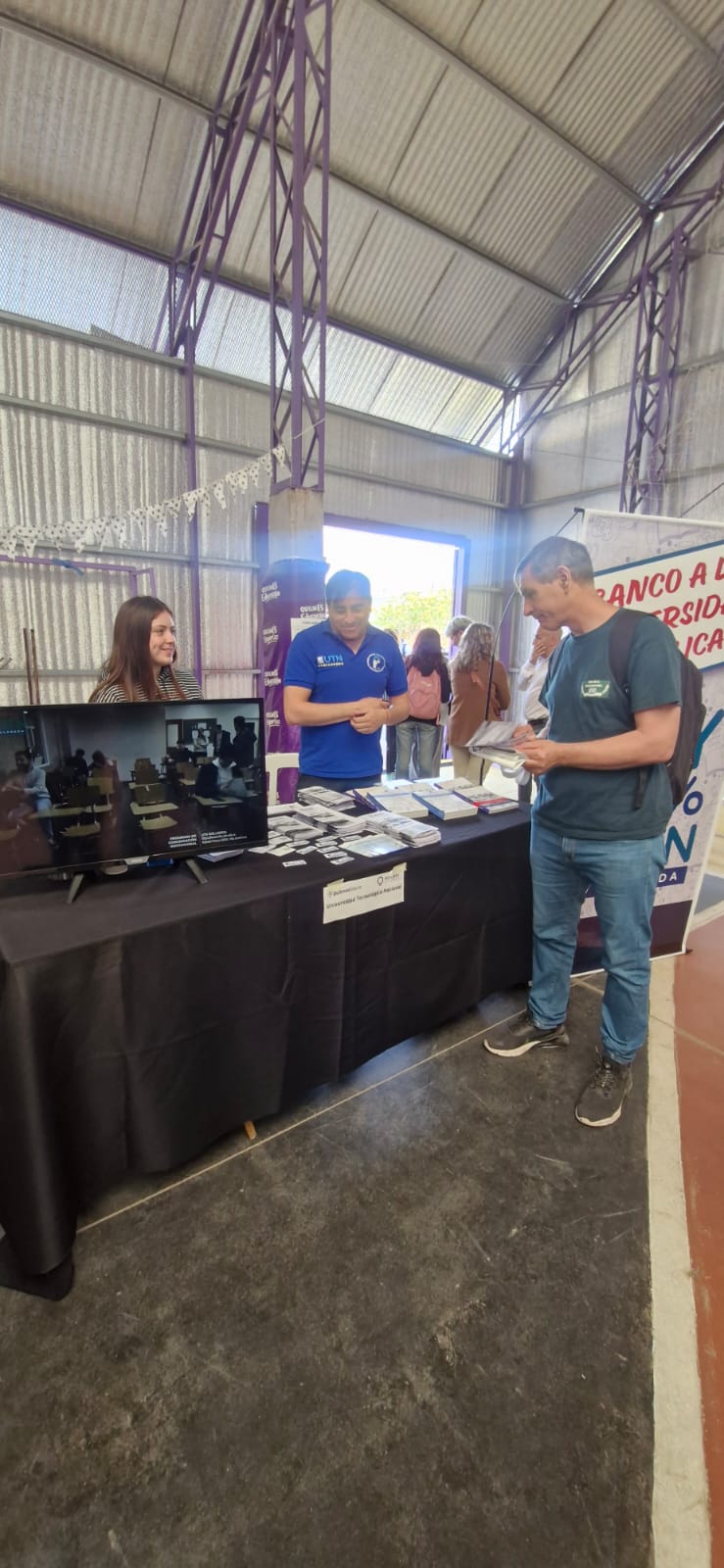 Desde la Secretaría Académica, junto con personal no docente de la Facultad, se brindó atención al público y se entregó material informativo acerca de las carreras de Ingeniería, las Tecnicaturas Universitarias, el Tramo de Formación Pedagógica y las distintas capacitaciones dirigidas a toda la comunidad.