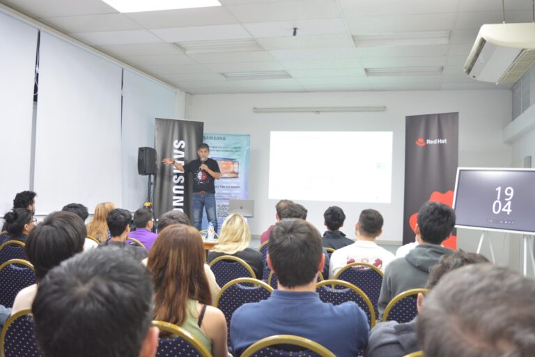 La charla estuvo a cargo de Abel Luque, por Red Hat, y de Guillermo D’ amico, por Samsung, quienes destacaron los principales avances tecnológicos que se desarrollan desde estas empresas, con foco en la inteligencia artificial, sus ventajas y características. Desde Red Hat se hizo hincapié en la innovación en plataformas de código abierto y su utilidad en el campo de uso de las organizaciones; desde Samsung, en tanto, se explicó la funcionalidad de la inteligencia artificial en productos de la Empresa para complementar tareas diarias y agilizar tiempos en el ámbito laboral y profesional.