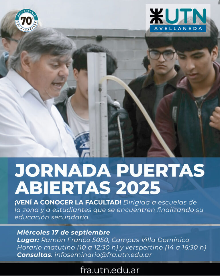 Abierta a la participación de escuelas secundarias y de estudiantes que se encuentran finalizando la educación media, el miércoles 17 de septiembre tendrá lugar la segunda Jornada de Puertas Abiertas del año, organizada por la Secretaría Académica de la UTN Avellaneda.